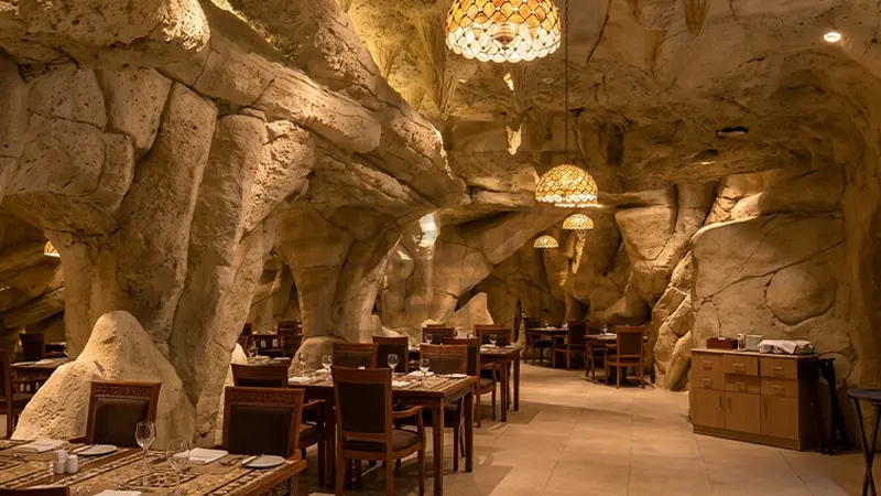 - Unique cave-style dining