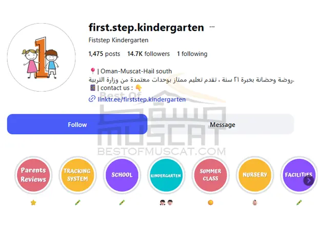 First Step Kindergarten and Happiness Nursery in Al Hail offers a warm and welcoming environment focused on early learning and child development. With a blend of educational activities and play-based approaches, it supports children’s social, emotional, and cognitive growth, making it one of the best and trusted options for parents in Muscat.